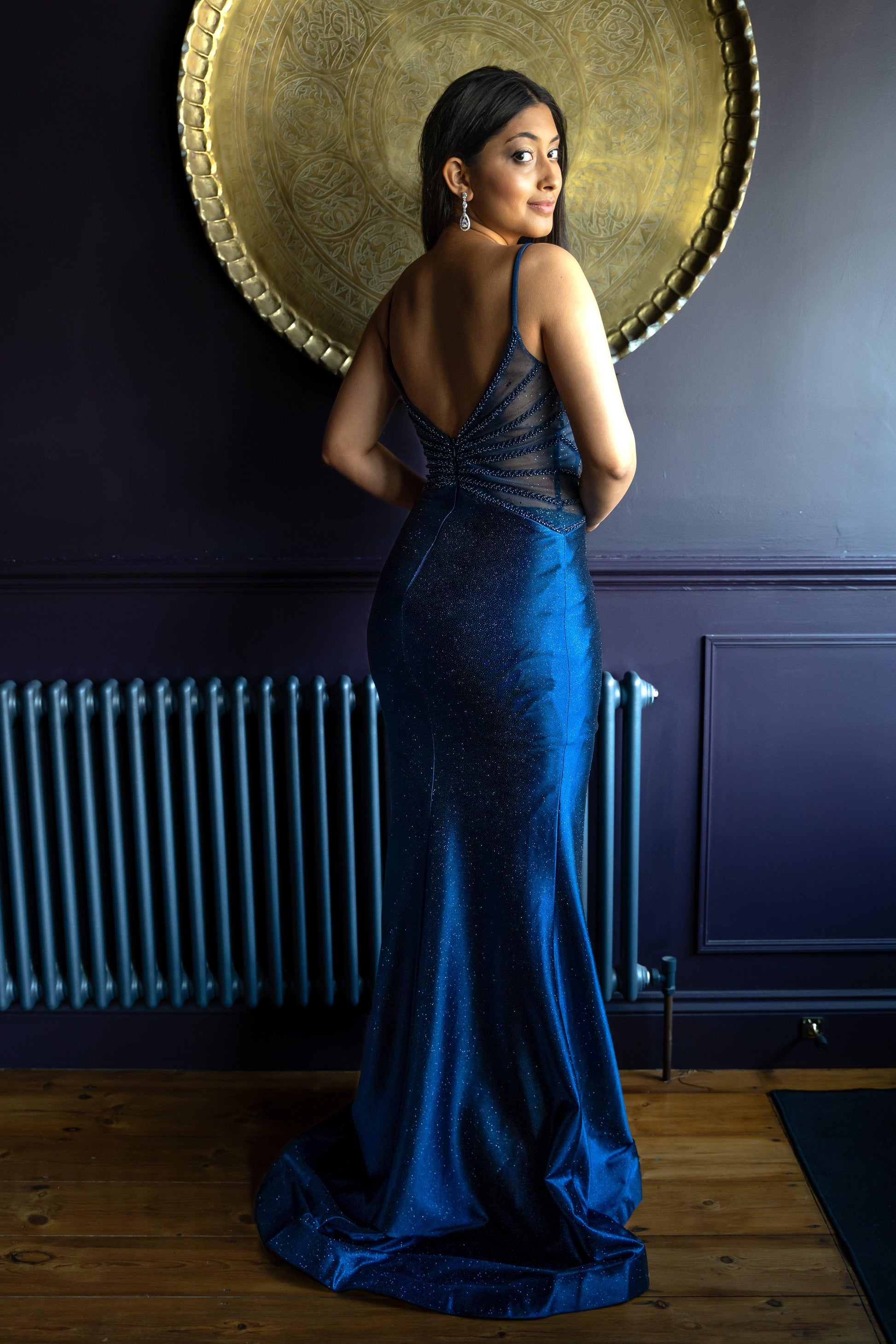 - Classic Colour Option: Available in a rich navy shade, ideal for those looking for blue prom dresses.
